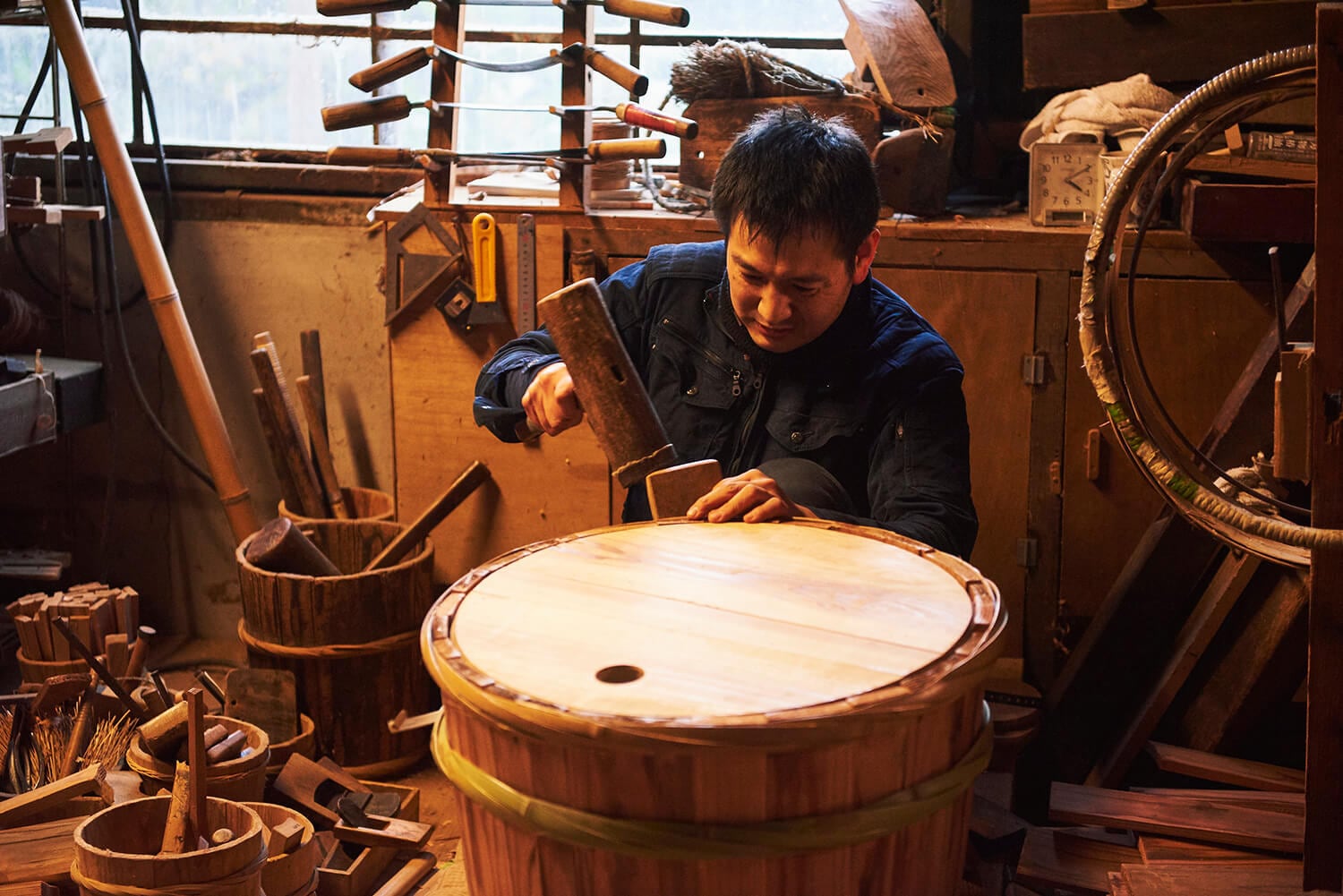 国産の杉材を用いて、木桶職人が手作りで仕上げたこだわりのクラフト木桶。